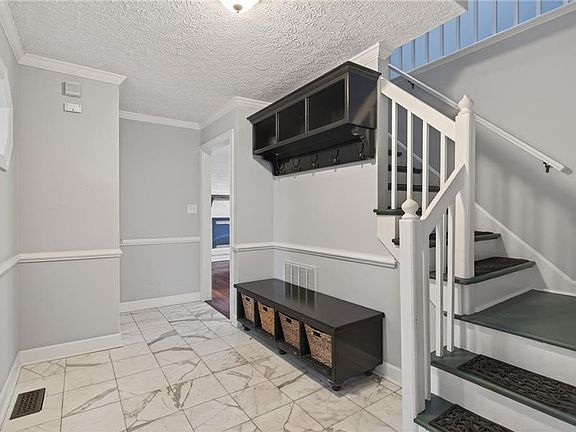 Stunning corner-lot home with fantastic features inside and out! Enter through a beautiful marble-floored foyer into a spacious layout ideal for modern living. The kitchen features abundant cabinetry, Corian counters, a granite-topped center island, and stainless steel appliances—perfect for cooking and entertaining. Enjoy meals in the elegant formal dining room with chair rail and a modern chandelier. Relax in the living room or the separate den with a cozy fireplace. The primary suite offers laminate flooring, a walk-in closet with built-in organizers, and a private en-suite bath. Additional highlights include a whole house fan, walk-in attic, and dual sinks in the hall bath. Outside, enjoy a fully fenced backyard with multi-level decking, a playset, and storage shed. The 2-car garage adds convenience to this well-appointed home. A must-see!