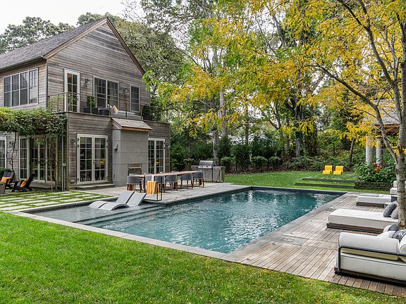 This Sag Harbor masterpiece is just moments from the Village, bays, boutiques and coffee shops. Location is key in this first time rental in North Haven. The first floor offers an open floor plan sprawling through the high end stainless steel kitchen, light filled living room, and out onto the yard. The kitchen offers a Wolf range, Sub-Zero refrigerator, an island with sink and large pantry. Off the entrance is a first floor junior master suite. The second floor consists of a master suite with luxurious bath and a balcony overlooking the backyard. Also, upstairs you'll find three additional bedrooms and two bathrooms. The top of the line finishes throughout the home carry down to the fully finished lower level. There is no shortage of beauty in the professionally landscaped backyard which invites you into areas of private outdoor entertaining.