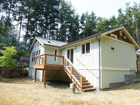 Great HUD Home on Orcas Island! Perfect island getaway tucked away in quiet area down long driveway. Tons of privacy & serene setting await you! Newer home built in 2005 with 3 bedrooms & 2 full baths. Large, open kitchen/dining area w/ high vaulted ceilings & impressive floor to ceiling windows, built ins & bonus area w/ french doors. Great kitchen w/ large pantry & granite countertops. Hardwood floors & large deck. Detached Garage/Shop. Huge yard w/ hot tub, pond, orchard trees & garden shed.