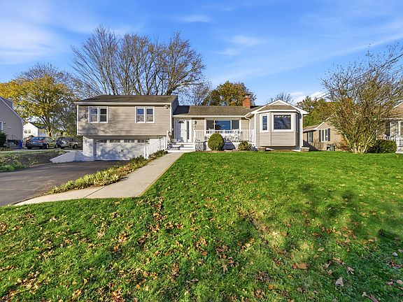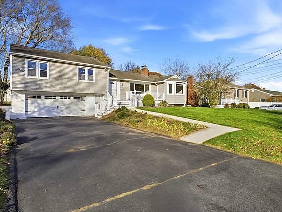 Charming Eastern Point home features a welcoming front porch with views of the Shennecossett Golf Course, and just a short stroll away, you can enjoy glimpses of Long Island Sound or continue the walk to the very special neighborhood beach with a playground and snack stand. Surrounded by lush landscaping and a fenced yard, the property offers both beauty and privacy. Inside, a spacious living room with wood floors and a striking bluestone-surround fireplace sets the tone. The updated kitchen provides abundant cabinetry, generous counter space, and room for a large dining table to enjoy casual dining. Sliding glass doors lead to two decks-perfect for outdoor dining and relaxing. The main level provides flexible living space, including another dining area and a cozy nook ideal for an office or sitting area. A large main-level bedroom features a vaulted ceiling, built-in dresser, generous closet, and scenic window views and can also be used as a guest room. There is a full bath on the main level with a second washer and dryer. Upstairs offers a private primary suite with its own full bathroom, plus two spacious bedrooms and a full bath. The lower level includes a laundry area with full-size washer and dryer, outdoor access, and entry to the oversized heated two-car garage with ample storage. A heated open space living area is partially finished as a family or recreation room, with additional unfinished areas for storage. Located in Eastern Point, a true walker's paradise.