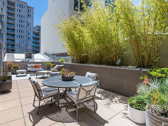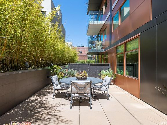 Welcome to a patio party on your spectacular ~500 sf exclusive use patio. Prep in your perfectly appointed kitchen with a Bosch appliance package, gas cooktop, paneled Studio Becker Thermador refrigerator w/icemaker. #308 is a corner condo w/light filtering in from two sides, patio garden views, from LR & BR, of the large bamboo planting beds, w/Flora Grubb low-maintenance succulents. This ~950sf, 1BR/1.5 BA home is gracious in size with 9'4 ceilings in LR/DR/BR. 72 Townsend has been meticulously restored (concrete & steel structure) & converted into South Beach's premier boutique building, near a great selection of restaurants, shopping, FiDi, museums, Embarcadero, Giants Stadium, Chase Center, 101, 280, Bay Bridge, CalTrans, Muni + Ferrys. This home has been upgraded: closet organizing systems (Valet Closets); upgraded screwless plates + dimmers + new lighting fixtures in LR/DR; Shade Store window treatments. Front Desk attendant, rooftop Deck w/BBQs, Community Room, 1 std pkg