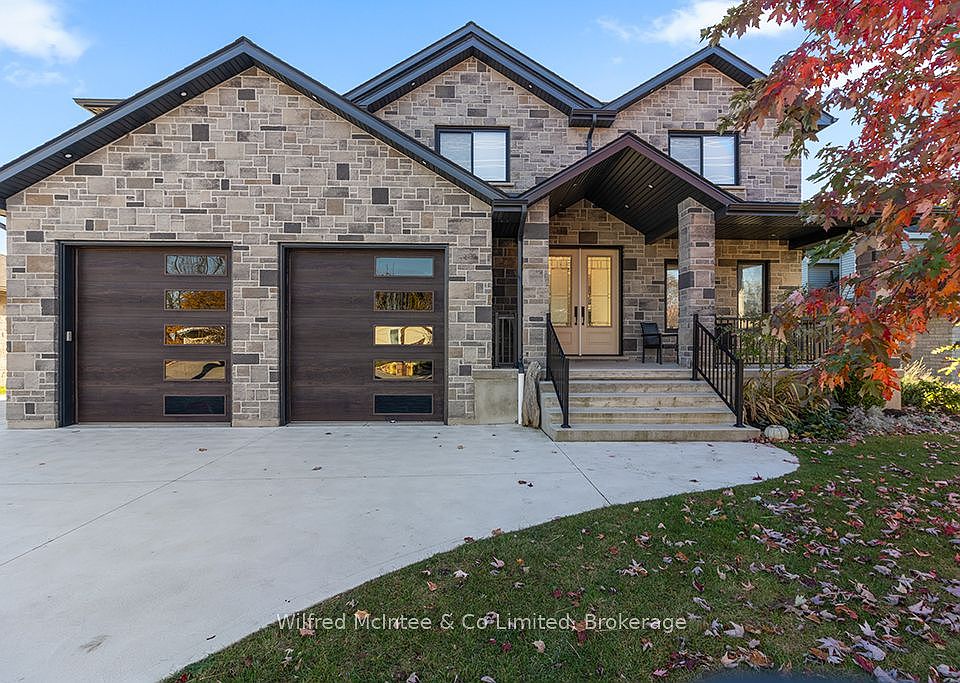 Come discover this executive two-storey home at 72 Victoria St S in the heart of Southampton. Offering almost 4,300 sq ft of living space across three levels, this stunning residence features 4+1 bedrooms, 3.5 bathrooms, an attached two-car garage, and a hard-to-find (in town) 1600 sq ft detached workshop with a one-bedroom apartment above - all on a premium 73.5ft x 250ft lot just steps from downtown shopping and dining, Jubilee Park, the hospital, public school, arena, and Southampton's famous sandy beach. The all-stone exterior and tidy landscaping deliver exceptional curb appeal, complemented by a triple wide concrete driveway and laneway leading to the shop out back. Inside the home, you are greeted by a great room w/18ft ceiling and soaring stone fireplace that anchors the open-concept main floor with engineered hardwood throughout. The gourmet kitchen boasts white thin framed shaker cabinetry for a refined and elegant look, distinctive quartzite counters and backsplash, and a wood-tone island. A bright dining area opens to the rear deck, while a home office, powder room, and mudroom with storage closets and heated floors complete the level. Upstairs, the oak staircase leads to four spacious bedrooms, including a luxurious primary suite with coffered ceiling, spa-like ensuite w/dual vanities, soaker tub, expansive tiled shower w/rain shower head, tile accent wall and large walk-in closet. The fully finished basement adds a 5th bedroom, large rec space, family room w/gas fireplace, 3-piece bath w/laundry, and utility room w/forced-air furnace, air exchanger, and on-demand hot water heater. The insulated 1600 sq ft dream shop is perfect for the contractor/tradesperson or hobbyist and offers oversized doors (one that is perfect for the RV/boat), Trusscore walls for easy cleaning, and radiant in-floor heat. Above the shop is a stylish one-bedroom apartment-ideal for guests, family, or income potential. Enjoy luxury, space, and lifestyle-all in one perfect package!