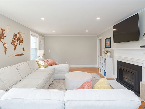 NEW to MARKET - MERRIMAC w/ separate in-law addition w/a convenient mudroom entryway! This charming New England Cape-style home offering over 2,200 sq. ft. of living space. This delightful property features 9 rooms, 4 bedrooms, and 3.5 bathrooms. The expansive kitchen is perfect for culinary adventures, while the dining room's bay window & China hutch add elegance. Enjoy a cozy living room with a new gas fireplace insert and versatile first-floor bedroom or office with two closets & new bamboo flrs. The second floor includes two large bedrooms w/ ample closet space & a full bathroom. Updates throughout include modern bathrooms & a finished lower level w/ a playroom, laundry room, & loads of extra storage. Newer gas air heating & hot water on demand! The large, private lot includes a vegetable garden, two storage sheds, & firepit for outdoor enjoyment. This sun-filled home blends comfort & charm perfectly. OPEN HOUSES: FRIDAY 4-6PM, SAT/SUN/MON: 12-2PM! A must see - gorgeous home!