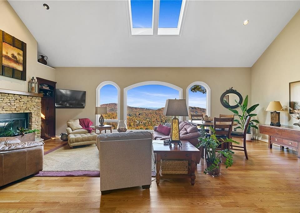 This beautiful 5BDRM/3FB/2HB Country-Traditional home enjoys an idyllic setting in the North Georgia Mountain gated-community of Big Canoe; a convenient location on one of Big Canoe's best-kept secrets (Shhh! Wild Cherry Lane) - a quiet, shady, walking-friendly cul-de-sac street, 5-7 minutes to all amenities and Main Gate; wonderful curb appeal, quality construction, eco-blend design, pro-active maintenance, spacious, light user-friendly floor plan with large optional-use rooms - AND OH, THOSE VIEWS!.....This incredibly well-constructed (steel framing, house-length wood-wrapped steel beams on Main and Terrace Levels; steel piers in cement pads below decks/porches) and beautifully maintained home is privately and strategically positioned (to maximize views) on a sloping, wood-shrouded lot of .91AC (+/-), with acres of greenbelt (no building!) behind home, and building-restrictive property adjoining..... Enjoy magical sunrises and incomparable 60-mile, panoramic (N-SE) views as well as gaze-worthy interior views of Big Canoe's mountains, lakes and golf courses from multiple rooms, decks, and porches.....5,131sf (+/-) of quality, beauty, light and openness, spaciousness, condition, and value..... Exterior is Hardi-Plank/shingle with stacked-stone accenting, featuring multiple roof lines, wide dormer, walls of windows on all Levels; wide, covered 2-step, flat-stone front Entry; side Grilling Deck and over-sized Screened Porch on Main Level; rear extra-wide, house-length Deck on Terrace Level; attached kitchen-level 2-car Garage (XL); exterior stairway (with railing) from widened/sealed driveway up to street in front of home; native flora, tasteful landscaping, and tiered railroad-tie, flat-stone-walled gardens enhance overall appeal..... Interior is light and spacious, thanks to abundant windows, multiple skylights, and heightened ceilings on all Levels.....Main Level features an open Entry Foyer (with Powder Room), oversized 2-story Great Room (where you're first struck with the WOW! views through long wall of tall windows, vaulted ceilings with skylights and wood-wrapped steel beams; beautiful hardwood floor, stacked-stone fireplace; open, gentle, stairway (with double landing) leads to over-sized Loft overlooking Great Room (currently used as an Office, but ideal for Studio, or BDRM/BA conversion); large, light Kitchen is open to separate Dining Room (Keeping Room?), partially open to Great Room, and has direct access to Screened Porch, Laundry Room and Garage; Kitchen features include a curved, 2-tiered Stonite-top Eating Bar, hardwood floor, heightened ceiling with skylight, and beautiful stained cabinetry; separate Dining Room seats 12+ - with a view, and features hardwood floor, 10ft ceiling, and built-ins; Screened Porch has stunning long-range views, ceramic-tile floor, beamed-ceiling with overhead fans, and direct access to the Grilling Deck....On opposite side of Main Level is the elegant Master Suite (with Sitting Area, wall of windows with stunning views, tiled Master Bath with separate soaking tub and shower, His-Hers Walk-In Closets.....Welcoming Terrace Level is accessed via partially-open stairway from the Main-Level Foyer, and features 9ft ceilings with wood-wrapped steel beams, "view" windows galore, wall-to-wall carpeting, and tiled Baths with glass-panel "barn Doors"; Space includes huge Family/Rec Room (room for pool table, media area, etc), Powder Room with walk-in Closet, large windows on two walls, and direct access to extra-wide, house-length Rear Deck - and oh, those views! Three large Bedrooms (two with multiple windows, walk-in Closets, Jack N' Jill Bath between, and direct access to Rear Deck; the other, with large window, abundant closet space, and Jack N' Jill Bath between it and closeted Bonus Room/Bedroom.....Huge under-house "crawl space" with exterior-stair access.....Priced below FMV, Appraised, and Tax-Assessed Value.