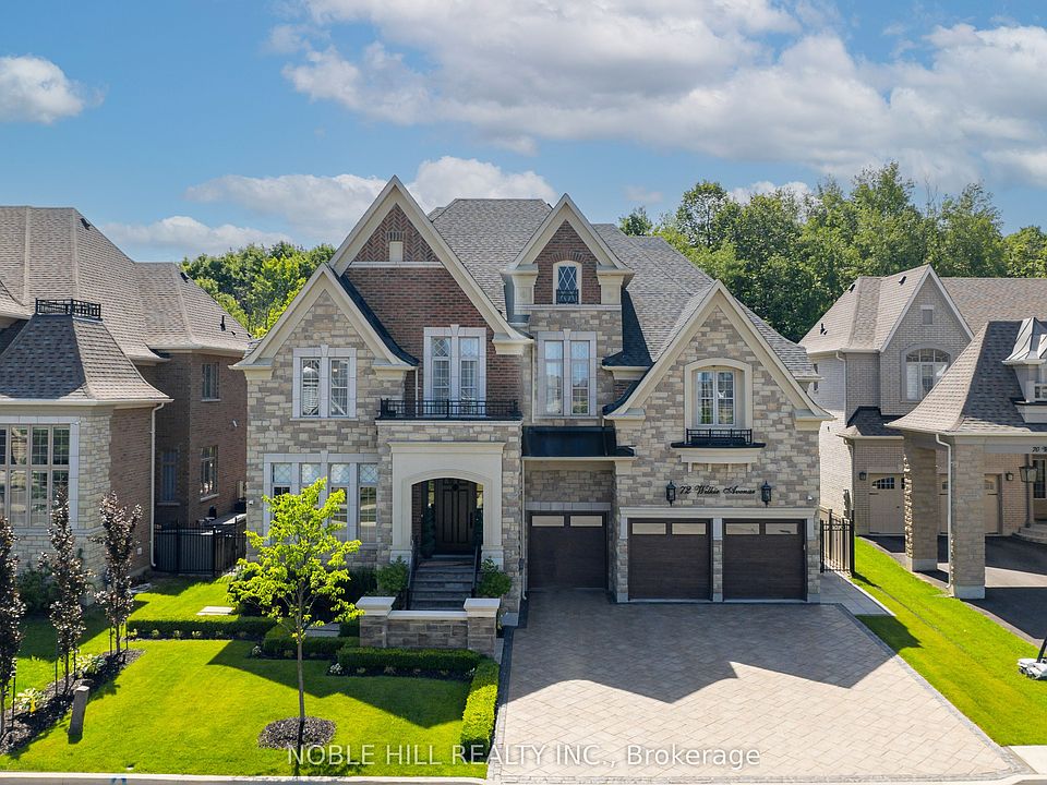 Welcome to 72 Wilkie Ave located in the prestigious and highly sought after neighborhood Gates Of Nobleton. This immaculate home nestled on a premium ravine lot approximately 70 ft lot x 132 ft of professionally landscaped grounds surrounded by private conservation features over 7700 sq ft of living space. 10 ft smooth soaring ceilings , wine room, designer RH restoration hardware lighting , solid custom doors , 5 spacious bedrooms consisting of state of the art ensuite washrooms & custom built in closets. Meticulously upgraded with the finest finishes and craftsmanship complimenting luxury, comfort and organization. Premium engineered oak flooring through out entire home. Great floor plan consists of main floor executive home office , formal dining room featuring two sided fireplace & coffered ceilings, open concept large family room w waffle ceilings. Exquisite designer kitchen features Miele appliances, integrated column fridge , traditional european style wood range hood, quartzite bullnose countertops , backsplash, separate preparation / catering room w built in coffee/espresso machine & Walk out to large loggia terrace from breakfast area overlooking a private oasis luxury resort setting amongst ravine conservation. Wrought iron railings. Five star Primary bedroom features walk out to terrace with breathtaking tranquility view of ravine, built in boutique walk in closet. Luxury Spa ensuite featuring 24 x 48 Milano porcelain floors , glass enclosed rain shower. Florence free standing tub, double sink & make up counter. Sound proof laundry room situated on upper level w built in counter & cabinets. pot lights through out , surround sound speakers, Pristine Showroom style true 3 car garage. Recreational style open concept finished basement w wet bar, wine fridge, full bathroom, mill work & storage. Irrigation system surrounding property, exterior lighting, rear Sonos speakers, b/u Generator, two funaces, 2 a/c units, alarm system, camera surveillance and more!