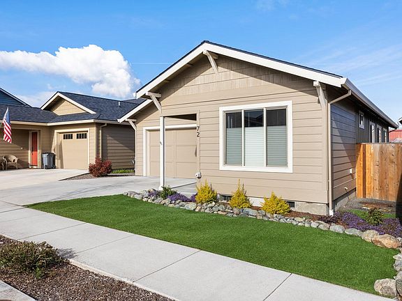 This easy care, energy efficient, single level home was built in 2018. Earth Advantage energy certification provides for high efficiency and lower utility bills. It's an elegant home featuring vaulted ceilings, wood flooring, and quartz counter tops in the kitchen. The spacious 987 square foot home has 2 bedrooms and 2 full bathrooms with a nice separation between both bedrooms. Great natural light throughout. Additional features include contemporary light fixtures, ceiling fan, gas fireplace, window coverings, stainless steel appliances, and an island in the kitchen. Access to the rear deck from the living room and primary suite. The low maintenance yard keeps life easy. This convenient Talent location is close to downtown Talent, city park, and short distance to Ashland and Medford.