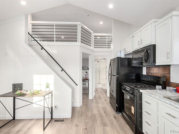 Step inside to a bright and open floor plan featuring vaulted ceilings, recessed lighting, and luxury vinyl flooring throughout. The sleek kitchen shines with white shaker cabinetry, a chic subway tile backsplash, and modern black appliances — blending beauty and function effortlessly.