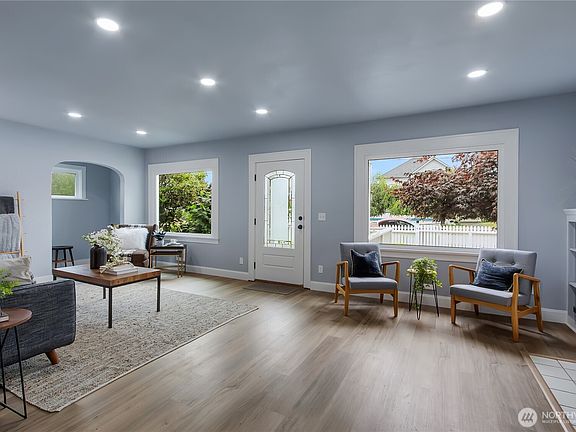 Beautifully updated 4 bed, 2 bath home in the heart of Hoquiam! This spacious home features an open floorplan with a large living room that flows into a fully renovated kitchen with white shaker cabinets and quartz countertops. The main floor primary suite includes a private deck, while the oversized laundry room adds convenience. Both bathrooms have been tastefully remodeled. Enjoy a fully fenced yard, large garage, and easy access to schools, parks, shopping, and more!