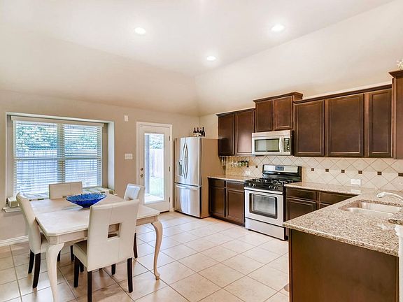 The spacious living room welcomes plenty of natural light and connects smoothly to the dining area. The kitchen is well-appointed with granite countertops, stainless steel appliances, ample cabinet and counter space and a cozy breakfast nook for casual meals. A pantry with washer and dryer hookups adds everyday convenience.