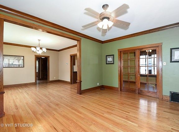 Remodeled Bungalow Charmer features Beautifully Restored Hrdwd Flrs & Wood Trim~Granite Countertop Kitchen w/42"Espresso Cabinets,Recessed Lighting & New Stainless Steel Appliance Pkg(2009 & 2013)~Remodeled Bathrm features Subway Tile Shower/Tub, Mosaic Ceramic Flr, Updated Faucet & Light Fixtures~Freshly Painted Master & 2nd Bdrm w/Clst~Cabinets~Den w/Oak French Doors or 3rd Bdrm w/Closet~Natural Light & Semi Finished Walk-up Attic w/Closet & Electricity & 2 Potential Bdrms or Easy Expandability into Additional Living Space~Enjoy the Scenery in Your Enclosed Front Porch w/Ceiling Fan Light Fixture~9' High Ceilings in Partially Drywalled Basement w/Electrical Outlets & Cabinets w/ 2 Additional Rms Build Out w/ Closets~Huge Backyard For BBQs w/Oversized Single Car Garage Freshly Painted & Concrete Driveway for 5+Car Parking~Double Hung Windows just Cleaned w/Storms & Screens & in Excellent Condition~New A/C(2014)~New Roof(2013)~H20 Heater(2009)~Washer/Dryer(2011)~Radon Mitigation(2011)