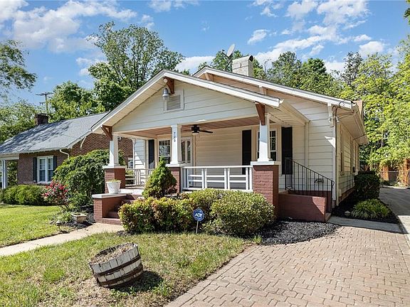 This adorable bungalow on the edge of Emerywood is waiting for you. The large covered front porch welcomes you immediately, and is big enough to become an extension of your living space - just imagine sipping a glass of your favorite beverage on a summer night out here! Walking in you'll immediately notice all of the of windows throughout, which allow for a ton of natural light. The home features two nice sized bedrooms, as well as another room at the back of the home that can be used for a small bedroom, or office, or craft room. Two bathrooms means that there will not be any waiting in the morning while getting ready. Out back, you'll find a patio, as well as a large building with power - perfect for exercise equipment, a yoga studio, a true "work from home" space, or a myriad of other uses. This home is well located - close to Downtown High Point, the fun on Main St, and the ballpark/soccer field. Come check it out today!!
