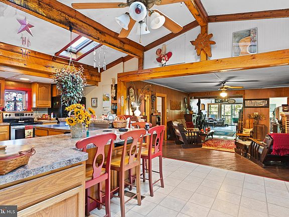 Three bedrooms, 2 baths and a huge game room with bar. Game room opens up to a wrap around deck overlooking the creek. Master bedroom on the 2nd floor with sliding doors to a wrap around deck. Property also includes a brick fireplace, skylights and wood floors in many places. 2 car detached garage with a 2nd floor loft. Owner has lived there for nearly 60 years. Property does not go to the creek.