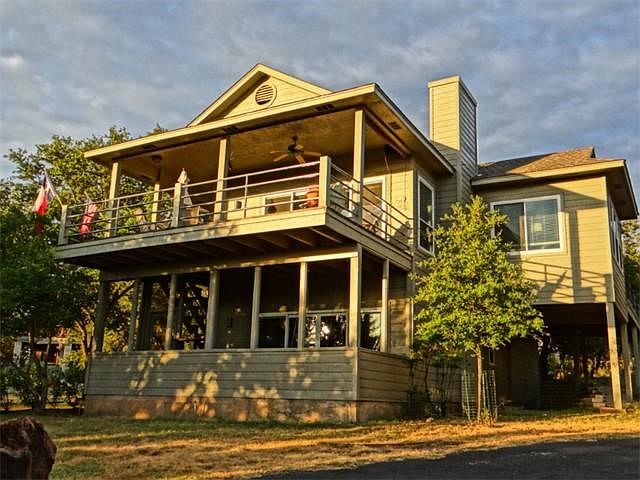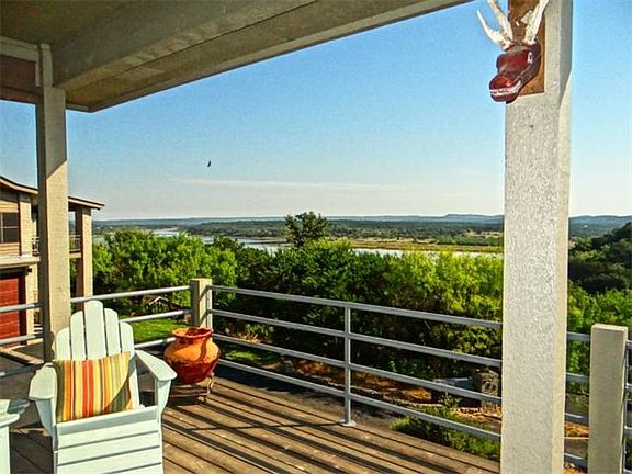 Hilltop panoramic views of Lake Travis! This is one very cool and charming house. Perfect for a weekend get-a-way or a fun full time. Master Kitchen, and living room are upstairs with the views. Large decks to relax, including a private one off the master. Kitchenette in the downstairs bedroom, great for guests and family! Quality gated community with boat launch, tennis and three pools. There is even a small airstrip nearby.