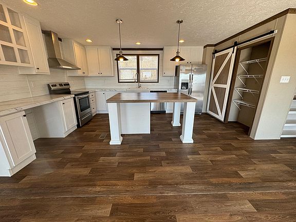 Immaculate Farmhouse style home with all the upgrades. Large open floor plan with split bedroom design, eat in kitchen with farmhouse style center island with pan drawers, farm house sink, sliding barn door to access pantry, kitchen desk with cabinetry, European style oven hood, stainless appliances, new refrigerator.Laundry/ Mud room has farmhouse style lockers, floor to ceiling farmhouse style cabinets, space for freezer. Large open living room with built in cabinets, built in bookcase, a family room/den with storage area, Large master bedroom with en-suite bathroom and walk-in closet. Farmhouse en-suite bathroom has double vanities, built in cabinets, soaking tub, double walk in shower, whitewashed walls. 3 additional guest bedrooms and guest bathroom make this a large family farmhouse style home. Home is eligible for 100% financing with a VA or USDA loan, or 96.5% financing with an FHA loan, also possible seller financing. As with all property/land transactions buyer should conduct their own due diligence to ensure all information is accurate to their satisfaction.