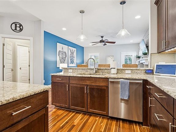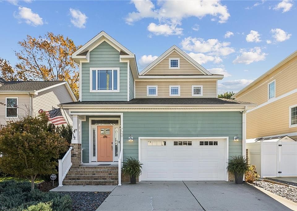 0.3 mi to Bad Ass Coffee & Zeke’s Bean and Bowls • Near Marshview Park & VB Trail • 0.7 mi to Hilltop Shopping CenterCustom coastal home built by Beach Building Group in 2013 offers quality construction and open-concept design. Features 9.5-ft ceilings on main level, upgraded trim, gas fireplace with custom hearth, mantle, and built-ins, plus wired A/V. Gourmet kitchen with gas range, granite countertops, bar seating, and center island. First-floor bedroom with full bath and Murphy bed. Upstairs includes 9-ft ceilings, spacious primary suite, walk-in closet, and oversized shower. Outdoor living with blue-stone patio, pergola, fenced yard, dual outdoor showers, custom shed plus detached office shed. Epoxy-finished garage floor, Garage Monkey storage system, and meticulously maintained throughout.