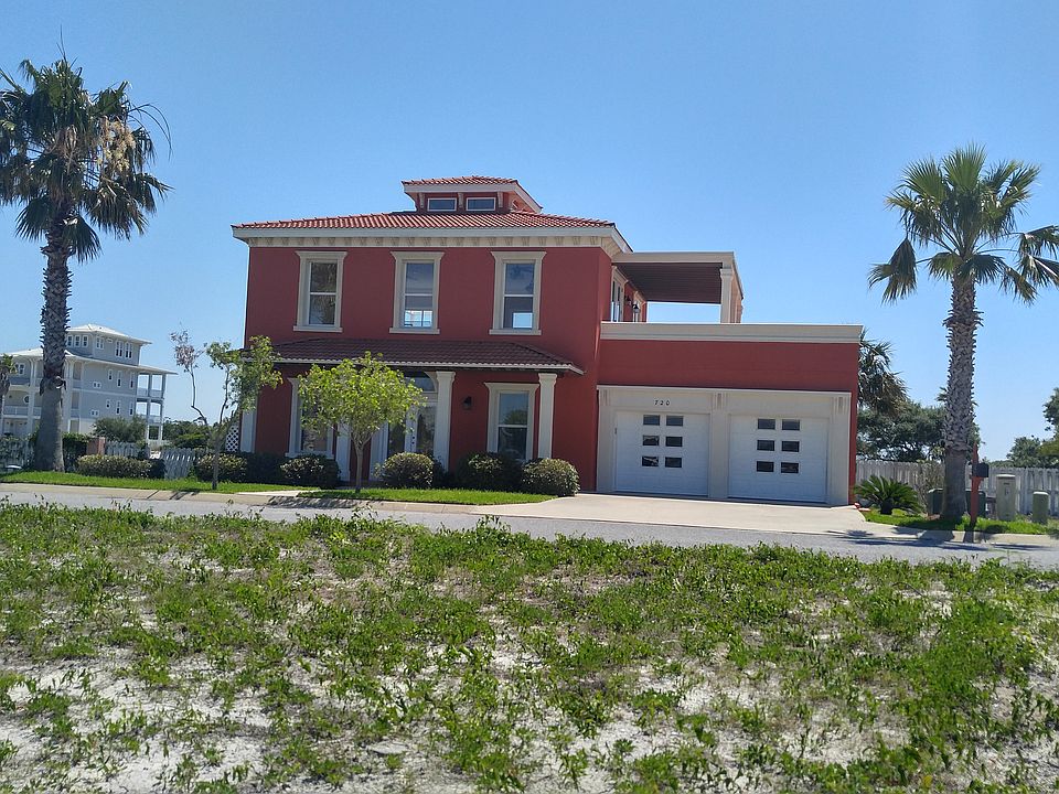 ICF Construction with concrete barrel tile roof. View of Gulf of Mexico and Johnson Beach National Seashore from 2 decks. Short walk or drive to public beach access and Johnson Beach National Seashore. Private patio with fireplace and fountain. Small sub Division with only 16 lots and 2 houses