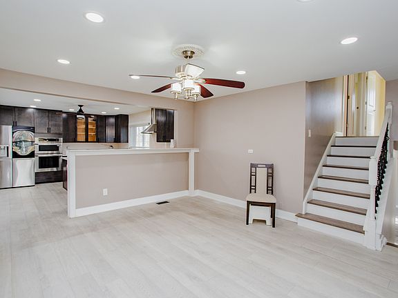 Lovely home with an OPEN KITCHEN - DINING RM - LIVING RM. Quartz counters with breakfast bar. New lighting. French door to yard. Remodeled bathrooms. Lovely engineered wood floors main level. Lots of kitchen cabinet space. Stainless steel appliances. All new ceramic plank style floors in family room that has sliding door to yard. New concrete patio and sidewalk. Double wide driveway plus side parking for possible trailer/boat/toys. Large fenced yard w New huge storage shed. Two patios areas. GREAT SCHOOLS!! Districts 54/211 schools within blocks for walkability. Close to expressways, shopping dining, recreation, shopping and parks. This is a great home in a great location, with a perfect floor plan.