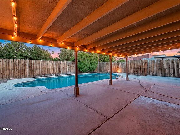 Welcome home to this beautifully updated retreat just minutes from Arizona State University, offering the perfect blend of comfort, style, and convenience. Step inside to a light, bright kitchen featuring gorgeous granite countertops, white cabinetry, and stainless steel appliances. The adjacent dining space opens through a French door to a large covered patio, creating the ideal setup for indoor outdoor living. The spacious great room centers around a cozy fireplace, perfect for relaxing evenings or entertaining guests. The primary suite offers its own private bath, while two additional bedrooms and a hall bathroom provide plenty of space for family or guests. A generous laundry room offers extra storage or pantry space, great for keeping everything organized. Outside, the north facing backyard is a true oasis with sparkling pool, a covered patio ready for summer barbecues or quiet morning coffee, and enough room for a grass area. Enjoy peace of mind with dual pane windows and major updates completed in 2017, including full interior remodel offering wood like tile, new HVAC, and updates to pool. Carpet in bedrooms is brand new. Whether you're looking for a personal home or an incredible investment opportunity near ASU, this property has it all, style, comfort, and location! (Photos with grass have been enhanced to show what it would look like with grass).