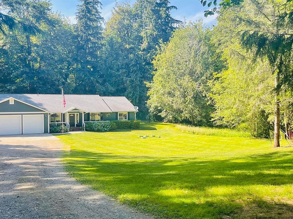 HERE IT IS the 3BD/2BA gorgeous rambler you've been looking for! The great room kitchen/dining/living combination has hardwood floors, vaulted ceilings and loads of natural light perfect for entertaining. The interior has primary w/5pc bath & walk in closet, 2 addtl' BD's, another full bath, den and office. The oversized 3 car garage is perfect for working on cars, hobbies, tools etc. The property is a park like setting w/ sprawling lawns, mature landscaping, RV parking and more. The backyard has a covered patio, firepit, fruit trees, storage shed, play area/dog run. Upgrades include granite countertops, ss appliances, paint, heat pump w/AC. Enjoy the convenience of being mins from town but living in the country. Don't miss this gem!