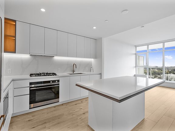 Brand new 1 Bed + Den at Smith & Farrow by Boffo Developments in West Coquitlam. This 40th-floor east-facing home offers 650 sqft of elegant interior space plus a 112 sqft covered balcony with panoramic city and mountain views. The kitchen showcases Fisher & Paykel 30" integrated appliances, Bosch dishwasher, quartz countertops, sleek cabinetry, and ample built-in storage. Features include 9-ft ceilings, floor-to-ceiling windows, wide-plank flooring, roller blinds, central A/C, and in-suite laundry. Enjoy premium amenities: 46th-floor rooftop lounge and terrace, heated pool, hot tub, gym, yoga studio, guest suites, and 24/7 concierge. Steps to Burquitlam SkyTrain, SFU, shops, and restaurants. Rent includes gas, hot water, EV-ready parking, and storage locker.