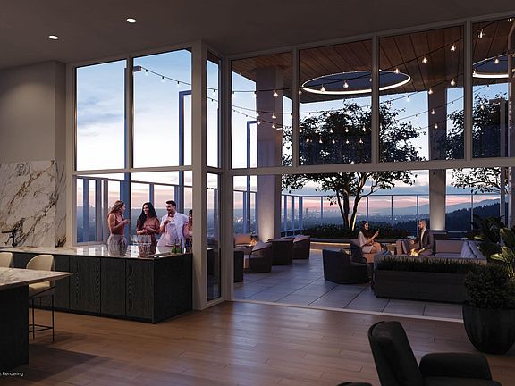 Smith & Farrow by Boffo Developments is perfectly positioned in West Coquitlam, just one block from Burquitlam Skytrain and minutes from SFU, shopping + restaurants. This east-facing 1-bdrm + flex space is a perfect starter home with 650sqft of efficiently designed indoor living + 111sqft covered balcony. Kitchen features full-size 30" Fisher & Paykel appliances, Bosch dishwasher and your choice of custom table at dining or counter height. Enjoy A/C, 9' ceilings, floor to ceiling windows, roller blinds, European wide-plank flooring throughout, and built-in wardrobe systems. Extensive amenities include outdoor pool, hot tub, 46th storey rooftop lounge, gym, yoga studio, guest suites and more. All homes include one EVready parking stall + storage locker. Move in Ready Next Month!