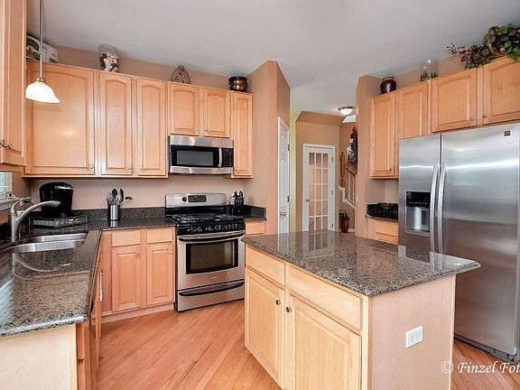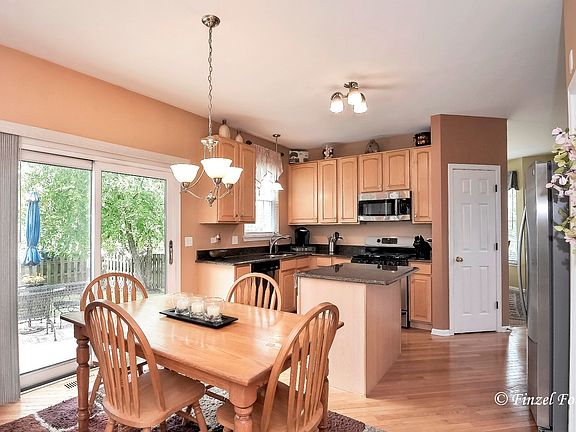 Fantastic & meticulously maintained Durham model located in the Heritage Trails subdivision! Impressive 2-story entryway with hardwood floors that easily flow to the Kitchen with 42" maple cabs, granite countertops, stainless steel appliances, center island & spacious eating area. Cozy Family Room is highlighted by brick fireplace. Separate living room & dining room spaces for easy formal entertaining! 4 Bedrooms upstairs including the vaulted master suite with 2 walk-in closets & private bath featuring soaker tub, separate shower & double sinks! Additional living space in the finished basement! Enjoy the warmer months on your patio with built-in firepit in your fenced in backyard. Recent updates include: roof, hot water heater, carpet, windows, garage door, blinds & more! Must see!
