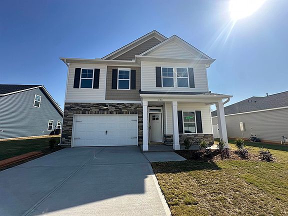 NEW CONSTRUCTION HOME - 5 BRs/3BAs w/ loft on a lovely lot located on the tree line and near the future swimming pool, cabana and community amenities This open-concept home is located in one of Great Southern Homes' newest community in the Upstate. Shiloh Trail is conveniently located in Wellford midway between both Greenville and Spartanburg. Our ever popular Benton II C invites you to come in from the moment you drive up and see the craftsman-style exterior that says "Welcome home!" Beautiful luxury vinyl plank flooring meets you at the front door and beckons you to explore all that this desirable floor plan affords. The kitchen is a chef's delight and includes an island, designer tile backsplash, white staggered cabinetry, pendant lights, granite countertops, a large pantry, and stainless steel appliances. The spacious Primary suite includes a vaulted ceiling, dual sinks with granite vanity tops, upgraded plumbing, a separate garden tub and shower, linen closet, and 2 primary closets. This home also includes brushed nickel light fixtures, two tone paint, and extensive storage space throughout. Interested in a GreenSmart home? Live Green. Live Smart. The tankless hot water heater, programable thermostat, Energy Star appliances, Low-E glass windows, above industry rated insulation, and a programmable 4-Zone irrigation system are just a few of the standard items that will assist with lowering your monthly utilities while reducing your carbon footprint at the same time. Shiloh Trail is just a short minute drive to grocery/drug stores, restaurants, medical facilities, shopping and dining in the downtown areas of Duncan, Greer, and Spartanburg. Quick and easy access to I-85 & I-26 makes GSP airport, the mountains, nearby lakes, and SC, NC, & GA beaches just a short drive away.