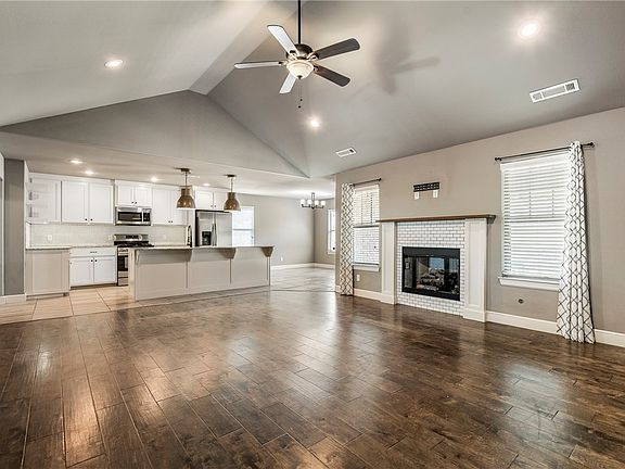 Welcome to this well-kept 4-bedroom, 2-bath home featuring a spacious open floor plan perfect for modern living. The heart of the home is the gourmet kitchen with granite countertops, stainless steel appliances, apron-front farmhouse sink and under-cabinet lighting. The kitchen flows seamlessly into the living area with vaulted ceilings, a cozy gas fireplace, and plenty of natural light—ideal for both entertaining and everyday comfort. Retreat to the primary suite with a barn door entry to a spa-like bathroom boasting a walk-in shower with dual shower heads, dual vanities and huge walk-in closet. Enjoy the covered back patio overlooking a privacy-fenced backyard, perfect for relaxing or outdoor gatherings. Recent updates include fresh interior paint and professionally cleaned carpets and tile, making this home move-in ready. Additional features include a 2-car garage, dedicated laundry room, drop space/mud room and convenient location minutes from schools, shopping, and parks.