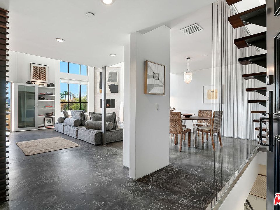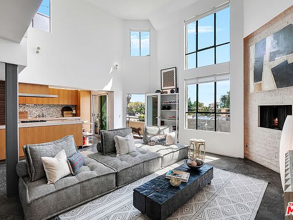Views Views Views! Architectural Three Level Condo Townhouse in West Hollywood exudes taste and quality throughout. Coveted location and expansive view, sun-drenched south facing unit. Soaring 18 ft Living room ceilings and fireplace with shadow box accent lighting, 2 Master suites, 2.5 eye-catching baths, Loft space for work at home/den opens out to PRIVATE rooftop deck with treetop & city views. Cooks kitchen with outdoor patio. Caesar stone countertops, high-end appliances. Innovative detailing in materials such as sealed concrete floors, custom cabinetry, walnut panel with hidden sliding door, steel columns and accent lighting throughout by builder designer Nathan Cork. Roberto Sosa of Obra Design tops this beauty off with masterful details. Pool & hot tub, walk to Urth Caffe, Zinque, Alfred Coffee, The Nice Guy, Cecconi's, Catch, Craig's, SOHO House and the San Vicente Bungalows.