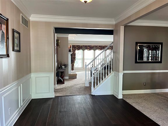 Expansive 1.5 story executive home in desirable Fairhaven Estates. Front entry flows to open floor plan with separate dining area, updated kitchen featuring 42-inch cabinets, breakfast area, center island, granite counter tops, tile backsplash and stainless appliances. Kitchen opens to great room with crown molding & gas log fireplace. Vaulted hearth room with access to wood deck. MAIN FLOOR primary bedroom w/bath featuring separate whirlpool tub & shower, double sinks & huge walk-in closet. 1st floor laundry with sink and 1/2 bath complete main level. Upper level boasts large loft area, 3 additional bedrooms one with private full bath and other 2 w/attached Jack & Jill full bath. All bedrooms include walk-in closets. The walk-out lower level adds expansive rec room with built in entertainment center and custom crafted wet bar. LL also includes 1/2 bath, bonus room suitable as office, exercise or sleeping area. Updated Zoned Heating and Cooling, Water Heaters and Roof. Rockwood Schools