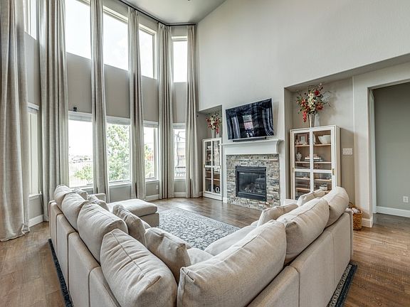 Inside, you'll find custom designer curtains that frame the dramatic two-story living room, a top-tier spray foam insulation system for energy efficiency, and a fully installed Vivint security system for added peace of mind. Movie nights are ready to go with a media room already wired and equipped—a rare turnkey feature in any home.