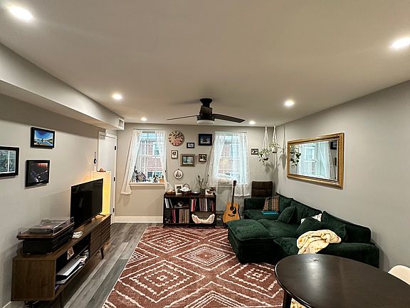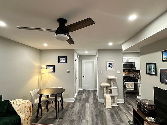 Step into an open, inviting layout with laminate floors, recessed lighting throughout, ceiling fans, and great natural light. The updated kitchen features stainless steel appliances, quartz countertops, and modern cabinetry, making cooking and entertaining a pleasure. The living area feels super cozy yet functional, perfect for relaxing after a day in the city.