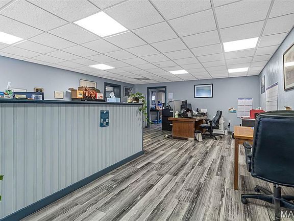 Imagine the exciting opportunity of having your office or business right next to your home, or even renting out the three-bedroom living space! The current office, operating as a law firm, boasts an abundance of space, including a spacious front office area, a private office, a conference room, a large bathroom, and off-street parking. The living area features three bedrooms, a kitchen with a separate dining area, main floor laundry, a basement for additional storage, and a one-car garage. This property is conveniently situated in historic Ste. Genevieve, just steps away from downtown!