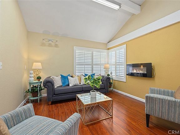 THIS HOME IS A MUST SEE! This BEAUTIFUL HOME is located in the highly desirable Corsican Villas in Brea! This SINGLE-STORY end unit features 2 bedrooms and 2 bathrooms with an open floor plan with plenty of natural lighting. You are welcomed at the entry into the spacious living room which has plenty of room to entertain and features a vaulted ceiling, and cozy electric fireplace. The dining room features recessed lighting, cabinetry for storage and is open to both the kitchen and living room. The beautiful kitchen features plenty of countertop space, stainless steel appliances, oversized sink, recessed lighting with ceiling fan, and direct access to the beautiful patio area. The Primary Suite features a large bedroom area that includes a vaulted ceiling and direct access to the patio, the bathroom includes a large sink vanity and glass enclosed shower. Down the hall is the second bedroom with a large window for natural lighting, recessed lighting and plenty of closet room. Beautiful, full bathroom with tub/shower combo just down the hall. Additional features of the home include 2-car garage, private patio area, inside laundry, shutters throughout and located close to the community pool and extra parking. Located within walking distance to Sonora High School, close to Downtown Brea, Brea Mall, entertainment, shopping, and restaurants. Come see this home and make it yours today!