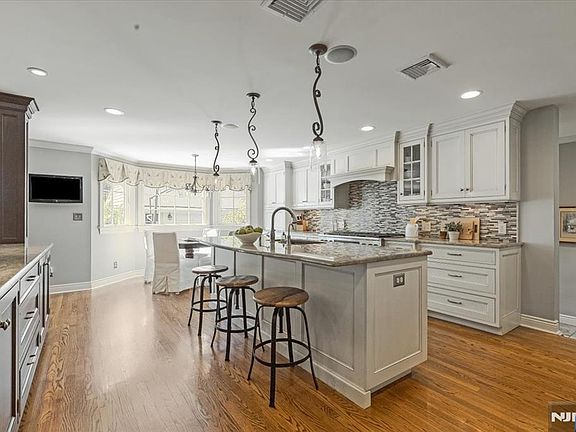 Gorgeous 4/5-bedroom, 3.5-bath Colonial in the coveted Willard School area of Upper Ridgewood. Boasting an expansive open floor plan, this home is ideal for modern living and entertaining. The heart of the home is a chef's dream—an oversized kitchen with two islands, high-end appliances, and a bright breakfast nook—all opening to a spacious family room with a gas fireplace & full wall of windows overlooking the backyard oasis. Built-in sound system provides music inside & out. The first floor also features a formal dining room, elegant living room w/ 2nd fireplace, private office, and a custom mudroom with built-ins, pantry, closets, and powder room. Upstairs, the spacious primary suite includes a spa-like bath & dual custom walk-in closets. Three additional large bedrooms, two hall baths, a 5th bedroom or office, and laundry room complete the second floor. The fully finished basement offers two rec/media rooms, a home gym, and abundant storage. With over 4,500 sq ft of finished living space, this spacious home provides flexible living areas for every lifestyle need. Step outside to your resort-style backyard with an in-ground pool, stone patio, pergola, and elevated, private lawn. Professionally landscaped with mature plantings and lighting throughout. This deep 88x219 property sits up away from the street adding to its private feel with a long driveway leading to an oversized 2 car detached garage. Call listing agent, Pam Chmiel at 201-248-6780 for a private preview.