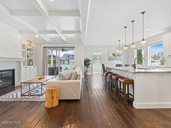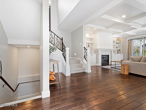 In the heart of downtown Coeur d'Alene, this 2010-built home offers a perfect blend of classic charm and modern amenities. With 5 bedrooms, 4 baths, and an office with external access, it features hardwood floors, an open kitchen with granite countertops, high-end appliances, and an island. The living area has a gas fireplace and coffered ceilings. The master suite boasts deck access, a luxury bathroom with a sauna, and a spacious closet. The daylight basement includes a guest room, full bath, and entertainment space. Outside, there's a 3-car heated garage, a landscaped yard, separate garden area, and an electric gate. Located a block from Midtown's dining and shops, and a short walk to downtown attractions and the lake.