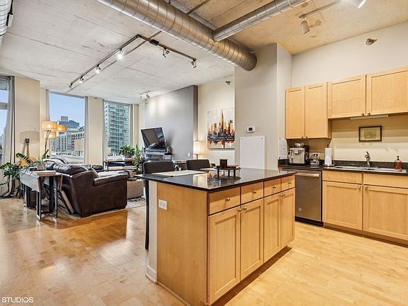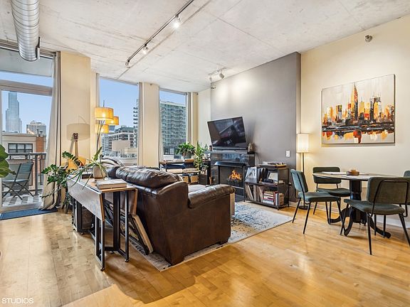 Modern one-bedroom loft in a solid building! Right when you walk in, you'll notice the floor-to-ceiling windows flood the space with tons of natural light, and you will love the beautiful unobstructed skyline views. This open-concept layout is complete with updated appliances, plenty of storage, tons of counter space, a gas fireplace, in-unit laundry, and your own private balcony. Monthly HOA includes Internet/Cable, Gas, Heat, A/C, Fitness Center, 24-HR Door Staff, bike storage, and so much more. The unit also includes an assigned storage locker. A deeded parking spot in the heated garage is available for an additional 30k. This River North location doesn't get any better - Just steps away, you'll find the tranquility of Ward Park and the Chicago River, perfect for peaceful strolls or enjoying nature. Yet, you're also within a short walk to the best dining, shopping, and nightlife that River North has to offer, with bustling restaurants and bars just a few blocks away. It's an ideal location for those who want to experience both the calm and excitement of city living while still having convenient access to the expressway and public transportation. Schedule your showing today!