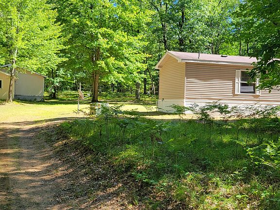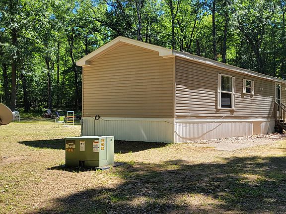 Finally! The one you've been waiting for and at a price you can afford! You're going to love it! This awesome 3BD/2BA mobile is nestled in the back of a nicely wooded, 6-acre lot, completely hidden from the road. As soon as you turn on that winding driveway, you start relaxing...until you see the trail, and then you're instantly transported to play mode. You can hop on your quad in your own backyard and ride straight into 45,000 acres of State Land! Invite your friends and family because there is plenty of room for them to bring their RVs and set up in the back yard. Enjoy the firepit or just sit out in the swing and take in the sounds of nature. For those who prefer swimming or ice fishing, the public access site for Wolf Lake is just up the road! If you're a hunter, you've struck gold! Set up your blind and have at it! No matter your pleasure, you've found your happy place. The home itself is very pretty inside, with a large living room, nice dining area, primary bedroom with private bath and gorgeous views of the woods all around. It's roomy and in good shape. A new water heater was installed in August and everything else is functional. It comes fully furnished. You can move right in! Don't wait to see this one. Homes that border state land, are located on a main north-south thoroughfare, across from an all-sports lake, clean, pretty and fully furnished AND at this price point are rare! Check it out before it's gone! OPEN HOUSE SUN. 9/3 FROM 12-3.