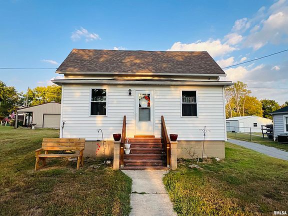 This 1 bedroom 1 bath home was updated mostly in 2018 with new roof, plumbing, electrical, and replacement windows. The kitchen was updated in 2021, with new cabinets, countertops, and appliances. There is a living room, dining room, bedroom, laundry room, bath with walk in shower, and an enclosed front porch. Also updated and in the basement is the water heater, HVAC, and sump pump. Handicap accessible aluminum ramp located in back. The detached building has a 1 car garage and 1 car carport. Large Back yard.
