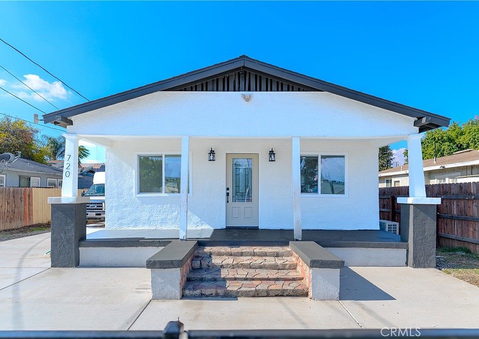 Discover this charming, single-story residence at 720 N Mountain View Ave, a home that has been lovingly upgraded and is ready for its new owner. This property blends classic charm with modern amenities, featuring a new concrete driveway, new paint inside/out, new flooring throughout, new mini splits, a new electrical panel, new windows, and a Modernized Kitchen with new cabinets, countertops, and stainless steel appliances. Updated Bathrooms with new vanities, fixtures, and finishes, and PAID-OFF SOLAR PANELS. Situated on a substantial lot, providing ample outdoor space for gardening, entertaining, or expansion. Easy access to local amenities. Located minutes away from the 215 freeway, schools, and parks. A one-car garage has been converted into an unpermitted ADU, ideal for generating additional income.