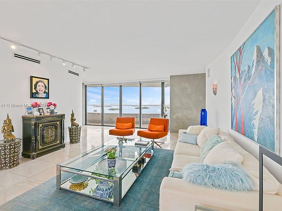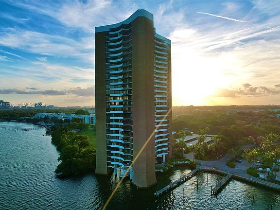 Breathtaking condo with marina in the iconic Palm Bay Tower. Surrounded by 10 acres of lush landscaping on Biscayne Bay. It offers expansive water views from every room. Includes impact windows, marble floors throughout and electric curtains. Amenities feature: heated Olympic-sized pool, jacuzzi, 24/7 desk attendant and security, marina, gym, tennis and pickleball courts, valet parking, grills, guest parking, and on-site management. The building's marina is undergoing a full renovation, generates income and accommodates boats up to 100 feet. The building is also undergoing restoration, with the West balconies soon to reopen. With no available units for sale, this 68-unit boutique building demonstrates its value. Close to the beach, airport, and downtown. Don't miss this unique opportunity.