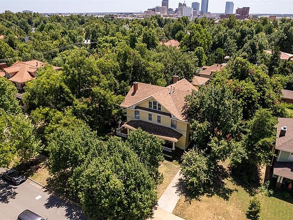 The story of this magnificent home is the story of Oklahoma City. Just two doors down from the former home of Perle Mesta, Oklahoma’s famed ‘hostess with the mostest,’ this beautifully proportioned turn-of-the-century estate occupies an oversized lot brimming with promise. Her façade is classic colonial with a clever twist: a large, Queen Anne-style gable gives the home a dose of flair. Below that, a wide, graceful eave shades the sweeping front porch flanking the front door. You’ll spend a good amount of time here, laughing with neighbors, sipping, reading and watching the world go by. Original tile in the front vestibule and original wood floors add patina throughout the first floor. These floors have not been refinished – ever- and are glorious. Everywhere you look: incredible untouched original paneling and woodwork, antique chandeliers, working fireplaces (five!) and a level of craftsmanship not seen in a century. The home was built by Dr. Thomas and Anna Craven and patients were seen in the west parlor. The formal parlor, to the east of the entry, leads to the sun porch and through to the dining room, big enough to host everyone at the holidays and then some. In the large kitchen, added on in 1924: a sizable island, breakfast room and, be still our historic hearts, the home’s original cabinetry! The finished basement is big enough to be a home theater. The second floor contains more original floors and unsullied woodwork and four bedrooms including a suite. On three is a 900+ sf suite of dreams. Steam shower, massive closet, sitting area, second laundry, built-ins and its own HVAC. The grounds contain the original carriage house and stable, now a two-car garage, a large outdoor living space with deck, hut tub and pergola and enough room to create your dream landscape or a sparkling swimming pool. The sunniest belle of Mesta Park is ready for her next big moment. She’s got great bones. Will you be the one to guide her into her next exquisite chapter?