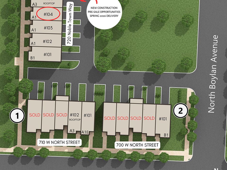 NOBLE PLACE PRE-SALE OPPORTUNITY! STUNNING NEW CONSTRUCTION OPPORTUNITIES, WALKABLE TO EVERYTHING DOWNTOWN RALEIGH, FEATURING UPDATED, CUSTOM DESIGNS! ESTIMATED COMPLETION SPRING 2026. Design selections are already included in the total price of the home. This is the final phase of Noble Place Townhomes. For more pre-sale opportunities or move-in ready opportunities, reach out to listing representatives, Emma Douglass and Emily Mitchell. Welcome to modern living in the heart of it all. Noble Place brings together luxury, comfort, and walkable lifestyle like nowhere else. This home features an edgy, modern, high-end design with custom features and upgrades throughout. You'll love the built-in bluetooth speakers in the ceilings, the 9 foot ceilings, and the custom paint and accent walls throughout. The first floor flex space offers versatility for your lifestyle - make it an office, a guest suite, a fitness studio or an entry-level lounge to host your friends. The main level features a gourmet kitchen with custom tile backsplash, a roomy kitchen nook, and an open layout that makes it easy to host friends or just spread out. Relax or host on the oversized screened-in back porch—your personal outdoor hangout in the city, giving you a bit of outdoor space for morning coffee or winding down after a long day. The main bedrooms are tucked away for privacy upstairs, featuring two spacious bedrooms with walk-in closets, each with their own, individual, spa-inspired bathrooms, and stylish custom wall detailing. With three bedrooms—one on the first floor and two upstairs—you've got plenty of options for guests, home offices, or just extra room to breathe. You'll also have a one-car garage with oversized storage closets, so everything has its place. Plus, limitless street parking and Downtown parking for guests! This community is designed to offer you the luxurious lifestyle you deserve. Kick back, relax and know that the exterior, lawn care, and maintenance is all taken care of (for a considerably low HOA compared to other Downtown townhomes and condos). And the best part? You're just steps away from all the action that Downtown Raleigh has to offer. Walk to cafes, restaurants, cocktail lounges, live music, fitness studios, salons, parks, and more. The neighbors are great. The homes are beautiful. The lifestyle is second to none. Come check it out. Give us a call. Live where Raleigh comes alive.