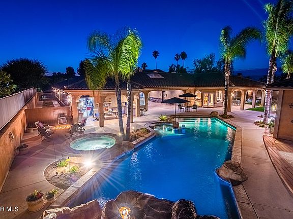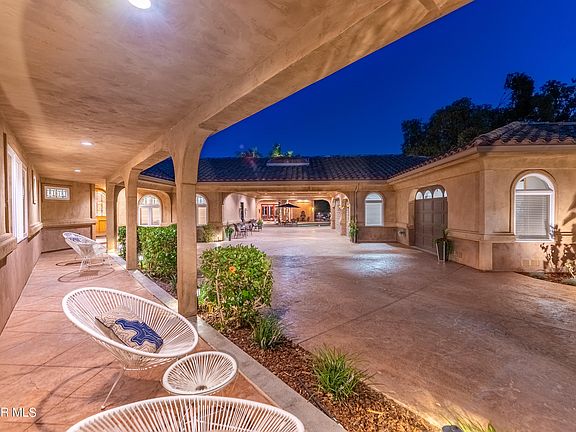 Sensational Custom 4 bedroom PLUS OFFICE and 5 bath SINGLE STORY Estate behind private gates, perfectly situated at the end of a quiet cul-de-sac. A simply breathtaking setting with complete privacy! Multiple structures including a DETACHED approx 700 sqft GUEST HOUSE with kitchen, high wood beamed ceilings, fireplace, bathroom, closet and laundry hook-ups. Relax on the raised balcony from the rear of the guest house that overlooks the open space below. There is a detached 5 CAR GARAGE with ample parking for guests on the stamped concrete driveway. This magnificent home feels like a 5 Star resort with Porte- Cochere that connects the main home to the car lovers garage. The interior of the home has the finest of finishes. The formal entry looks onto the main living area and out to the rear covered patio with views of the treetops. The living room, family room, premier bedroom, guest house and the outdoor kitchen all have a cozy fireplace to enjoy. Some of the interior features that adorn this beautiful home are custom tile flooring, high ceilings, solid wood doors, surround sound, central vac system, dual A/C, plantation shutters and arched window casings, some with stained glass etching. The kitchen is open to the family room with a large center island with sink, double ovens, breakfast bar, built-in fridge and walk-in pantry. The formal dining room is perfect for entertaining and the living room has many areas to sit and relax by the fireplace. The primary suite sits alone in its own wing of the home and has a relaxing fireplace and custom doors leading you to a section of the rear garden. The three additional guest bedrooms are located down a beautiful wide hallway in their separate wing. Two of the rooms have en-suite baths. Large indoor laundry room with loads of custom cabinetry, sink and tile counters. The private grounds are like a resort with palm trees, a firepit, sunning deck, covered outdoor kitchen with fireplace, built-in keg, fridge, sink, BBQ range and custom hood. Pebble tech pool and spa with slide and swim up bar with stools and seating ledge around the entire edge of the pool. R.V access and NO HOA! All of this offered on one acre of land, with total privacy! Sinaloa Lake is just a short distance away where you can join the private membership. Swim, kayak, and just enjoy the trail around the lake. Do not miss your chance to own a slice of paradise.