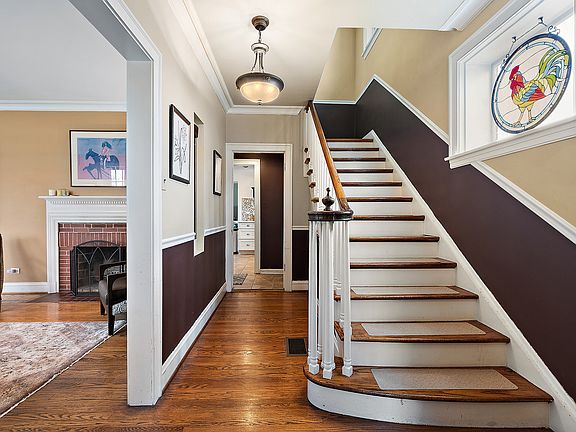 Charming 1930 home with the space and updates you desire! Walk into the gorgeous foyer and the window-lined living room with fireplace. Updated kitchen with beautiful cabinetry, and a new range. There is a large dining room, additional eating area or office, and spacious vaulted family room with exposed beams, fireplace and bathroom. Upstairs are 3 bedrooms and a full bath as well as additional storage with tall ceilings and lots of light. Gleaming hardwood floors are throughout this lovely home. The walkout basement is partially finished with a recreation room, half bath and lots of storage. Outdoor entertainment is on tap! There is a lovely deck - outdoor TV will stay, perfect for hosting movie nights or game parties! The exterior has gotten a "glow-up" in recent years! The owners have repainted, put in new gutters, new doors, replaced the fence and have done extensive landscaping including beautifully curated the gardens with easy-care perennials and raised beds for seasonal gardening! Wonderful neighborhood - close to town, train and shopping!