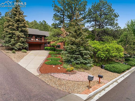 True Colorado living awaits you at this meticulously maintained, move-in ready, custom home in highly desirable SD-20. It is ideally located near Ute Valley Park, which is known for some of the best hiking and biking trails in Colorado Springs. It is a short walk to Pinecliff Park with a basketball court, pavilion and playground for children and pets. There is easy access to shopping and I-25. The large foyer has beautiful hardwood flooring. Upstairs is the huge living room with wood-burning fireplace and a walk-out to the front composite deck where you can glimpse Pikes Peak! Back inside, the formal dining room has more lovely hardwood flooring and a walk-out to the rear composite deck where you are surrounded by nature and can enjoy the 5-level water feature. The remodeled kitchen boasts quartz countertops, glass backsplash, soft-close, professionally painted cabinetry and a skylight. Your primary suite features a walk-in closet and another view of the summit of Pikes Peak plus an ensuite 5-piece bathroom with jetted tub and heated tile flooring! Also on this level, your guests will enjoy a renovated hall bathroom, with its hand-troweled walls and skylight. The lower level has an inviting family room complete with wood-burning stove. Enjoy year-round comfort with A/C in the summer, fireplace and stove in the winter. There are 2 more bedrooms, another bathroom and spacious laundry room. There is tremendous attention to detail inside and out, including a level 4 impact resistant stone coated steel roof! Do not miss out on this gem!