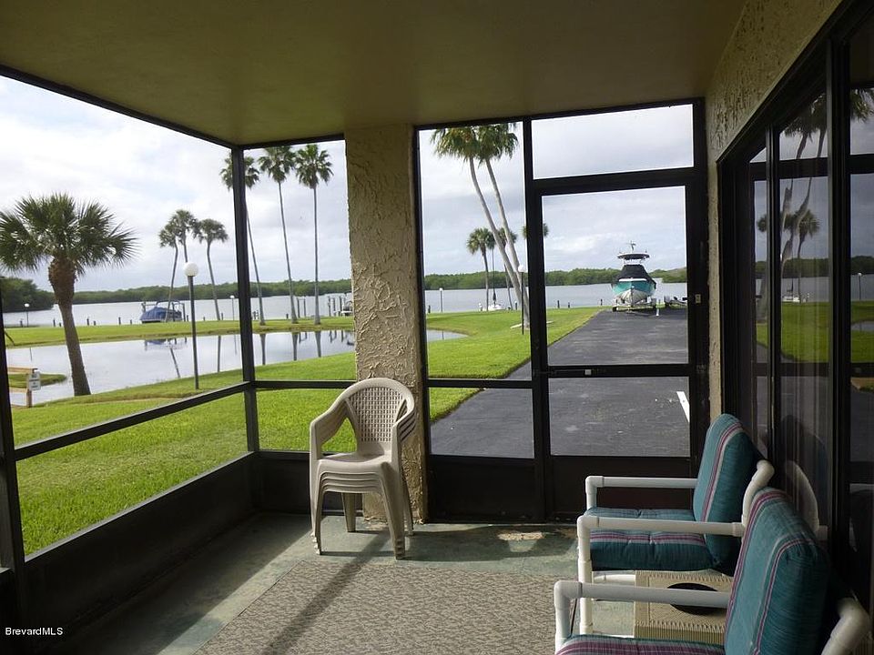 Live on the RIVER at a reasonable price!! Corner unit, 1st floor direct river and pond. Relax on large screened porch on river side. River views from most rooms. Enjoy Banana River and convenient location to Ocean and shopping! Great community pool and there is a clubhouse! Good floor plan and nice size for 2 BR and 2 Ba. Make your dream of waterfront living in this home..and update it and make it your own.