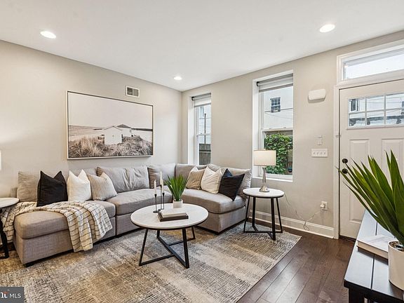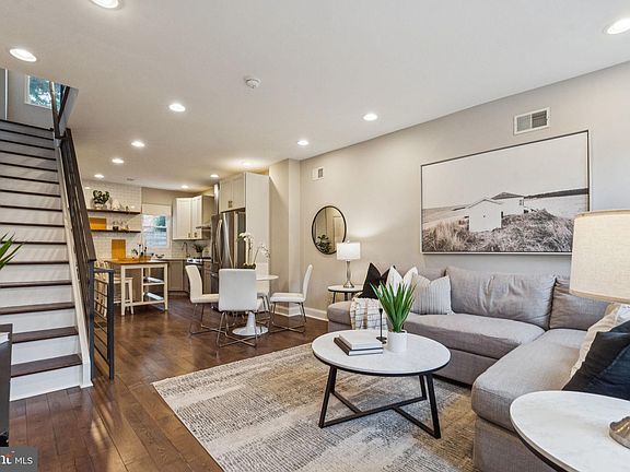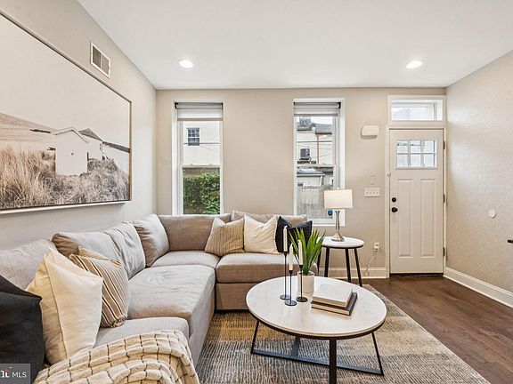 Recently fully renovated 720 S Chadwick Street is a spacious 3 bedroom, 2.5 bath home with a finished basement and two private outdoor spaces, tucked away on a quiet one way street in Graduate Hospital. Step inside to an open concept living and dining area featuring high ceilings, recessed lighting, and hardwood floors throughout. The updated kitchen is outfitted with stone countertops, stainless steel appliances, ample cabinetry, and wood beam shelving. Just off of the kitchen, a private rear patio offers the perfect space for al fresco dining or morning coffee. The second floor features two bedrooms with closets and a full hallway bath with marble tiled floors, a tub/shower combo with antique brass designer fixtures and a vanity with storage. The third floor is dedicated to the primary suite, complete with custom built-in closets and a private en-suite bath with penny tiled floors, classic subway tiled a tub/shower combo and designer fixtures. One more flight up leads to your expansive roof deck with skyline views, ideal for entertaining, grilling, or relaxing under the stars. The finished basement offers flexible bonus space for a home gym, playroom, or office, along with a half bath and a separate laundry and storage area. Situated just steps from the Marian Anderson Rec Center and within easy walking distance to South Street, Rittenhouse Square, and public transportation.