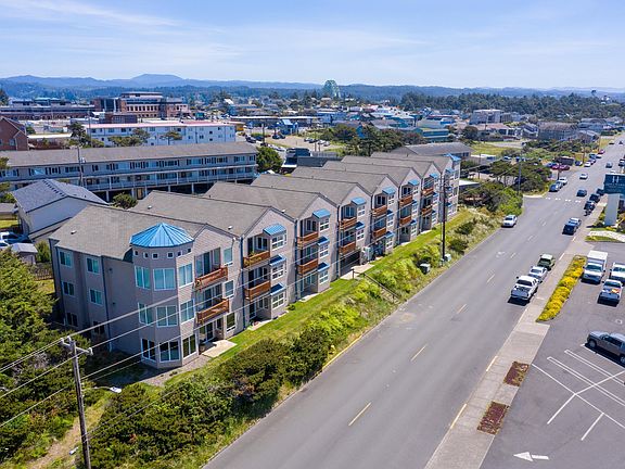Great location for your new beach getaway or full-time home! Beach access is just across the street. Close to Nye Beach, restaurants, shopping and medical facilities. Only minutes to the Historic Bay Front, too. This is an end unit so it's larger than other units and has an extra wall of windows with a slider to patio. Condo has open floor plan with a gas fireplace on those chilly coastal evenings. Condo is conveniently located on the main level allowing easy access without use of an elevator. Two bedrooms and two full bathrooms. Community room available for large gatherings. HOA fees include water, sewer, gas, and garbage. Sold completely furnished and turn-key ready. Just bring your luggage!