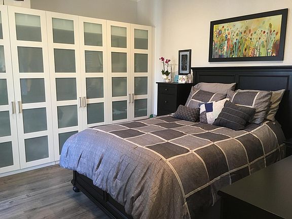 Stroll through a garden to a fully fenced 586 square foot detached home with 140 square foot covered patio and small yard on a quiet San Ramon court. The home features the following: *Open concept kitchen and living / dining room area *Silestone quartz counters with full subway tile backsplash *Stainless steel kitchen appliances including dishwasher, gas range, ventilation hood, and refrigerator *Huge undermount kitchen sink with garbage disposal *White shaker kitchen cabinets with under cabinet accent lighting *Peninsula with room for two bar stools. *Samsung clothes washer and dryer inside a laundry closet *On demand (tankless) hot water heater *Large bedroom with closet system *10 foot ceilings with recessed lighting throughout *Solar tubes, large windows, a front French Door and bedroom sliding glass door for lots of natural light *Air conditioning as well as ceiling fans, a 'whole house fan' and an attic fan for very efficient cooling *The floors are beautiful grey wood look Pergo laminate and walls are painted a nice light grey color *Wrap around paver patio from front French doors to a bedroom sliding glass door *Additional 140 square feet of covered patio with recessed lighting and ceiling fan and room for outdoor furniture *Fenced private yard with views of the Iron Horse Trail. Easy 1 mile commute (even via bicycle or electric scooter on Iron Horse Trail) to work centers at Bishop Ranch, Chevron, etc. and Trader Joe's, and many restaurants at The Marketplace and City Center. 5 mile drive or bike ride to BART station. Room for 1 car street parking (court). Tenant pays for gas, electric, trash, and cable/internet utilities. Water and sewer included in rent. $2700 security deposit. A credit check and background check required ($35 fee). Apartment ameniti Owner pays for water. Renter responsible for Gas, Electric, Trash, Cable, Internet. No smoking.
